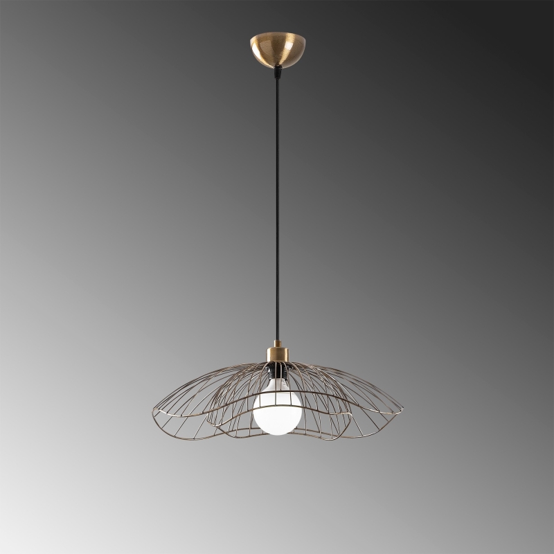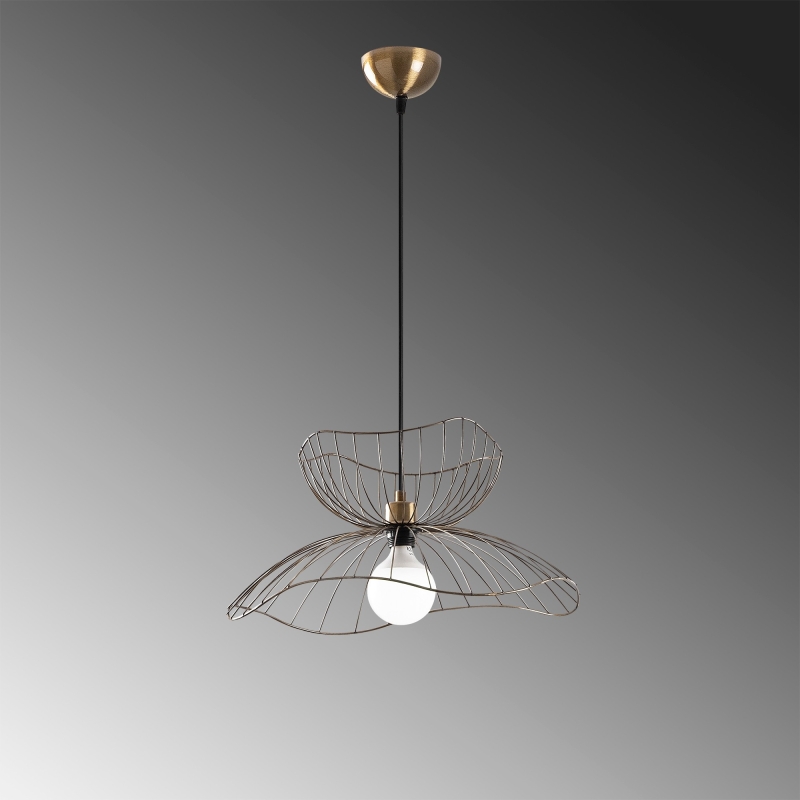 Originálny luster s dvojitým kovovým svietidlom vyrobené z mosadzných drôtov zaujme v každom interiéri.