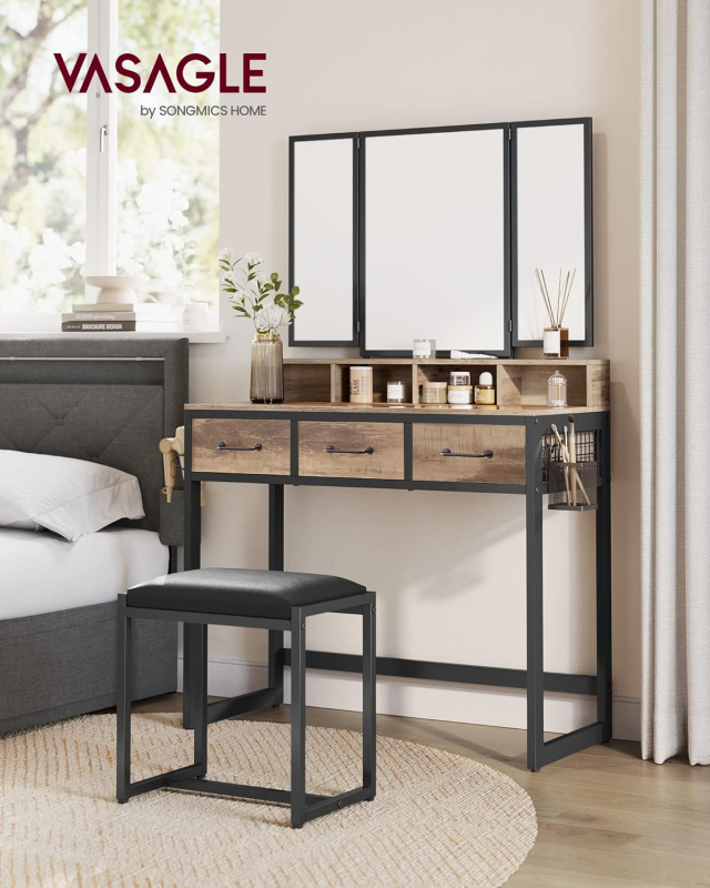 Overiť dostupnosť pre: VASAGLE Toaletný stolík 3 sklopné zrkadlá 90 x 141 x 40 cm hnedý dub