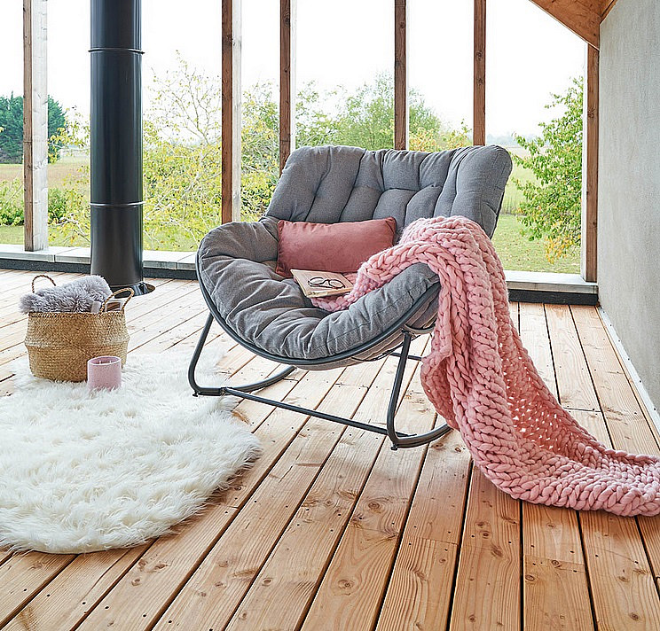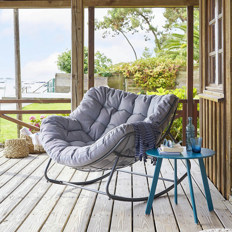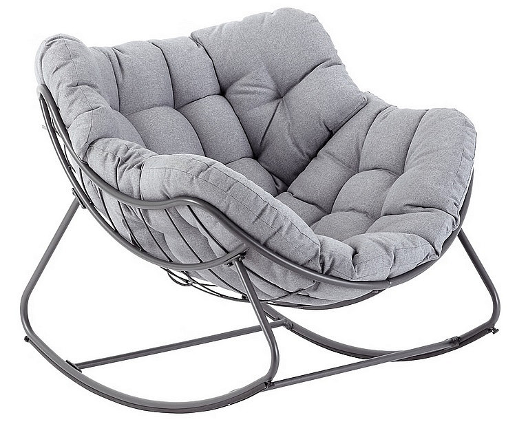 Relaxačné hojdacie kreslo so silným polstrovaním pre dokonalý odpočinok.