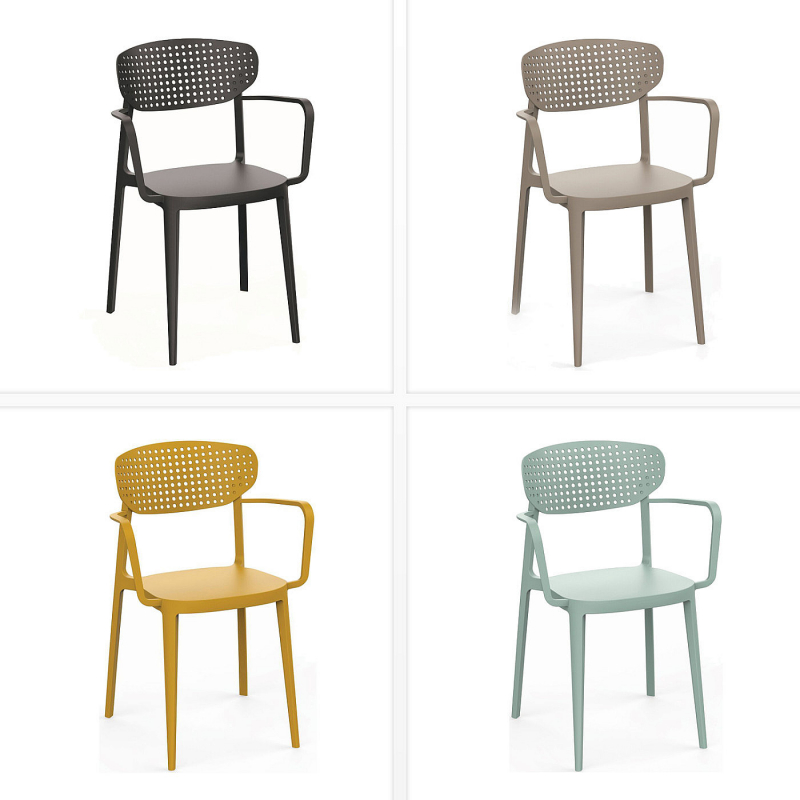 Retro, jednoduché, elegantné a zároveň praktické kreslo, ktoré disponuje pevnou konštrukciou, ktorá je vyrobená zo 100% recyklovaného materiálu.