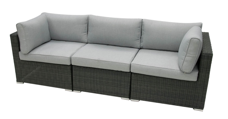 Nastaviteľná rovinnosť pomocou nožičiek. Sestava obsahuje: 1x Ratanový stredový diel SEVILLA (antracit), 2x Ratanový rohový diel SEVILLA (antracit)