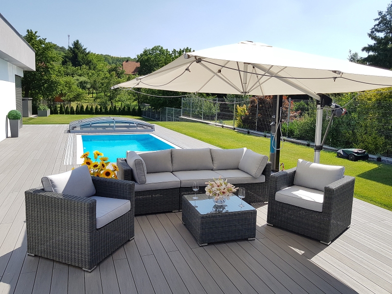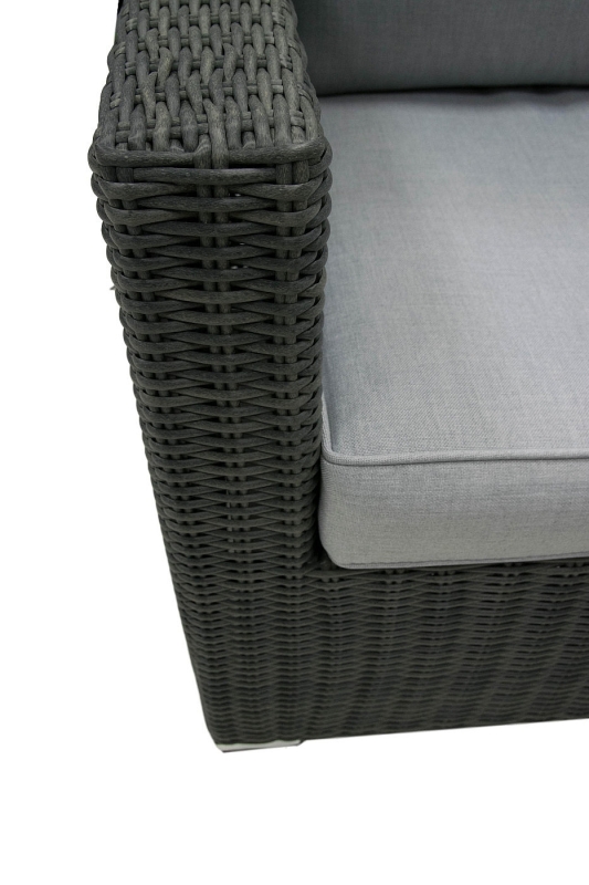 Ratanový nábytok z kolekcie modulových setov, ktorý vyniká svojou variabilitou.Zostavte si súpravy podľa Vašich predstáv.Umelý ratan sa pýši svojím nadčasovým dizajnom a takmer nulovú údržbou. Polyetylénové vlákno sa vyznačuje vysokou pružnosťou, pevnosťou a odolnosťou voči vlhkosti i UV žiareniu. Je odolný voči povětrmostním podmienkam a je vhodný na celoročné státie vonku (odporúčame pod zastrešením alebo ochranným obalom v zimných mesiacoch). Umelý ratan je ľahký, takže zaisťuje pohodlnú manimulaci záhradného nábytku po záhrade či terase.Konštrukcia je vyrobená z robustnej hliníkovej konštrukcie, ktorá je zvarená tak, aby zaistila vysokú nosnosť jednotlivých prvkov. Hliník sa vyznačuje vysokou odolnosťou a pevnosťou. Nedochádza ku korózii.Polstrovanie je v sile 10 cm, jedná sa o látku s hustotou 220 g/m2. Lemovanie po krajoch. Penová výplň. Všetky podušky sú vybavené zipsom.