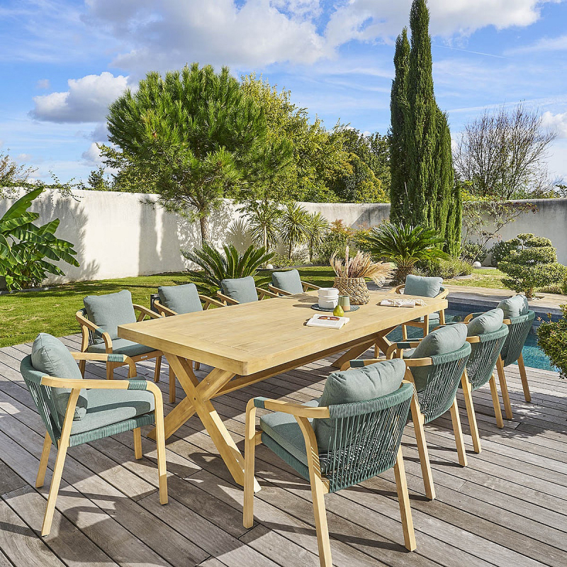 DEOKORK Luxusná jedálenská zostava z akácie OHIO 1+10 (oliva)