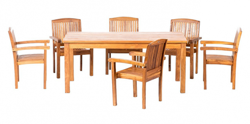 Sestava obsahuje: 1x Teakový stôl GIOVANNI, 6x Teakové kreslo PARIS
