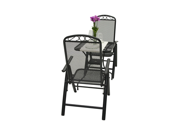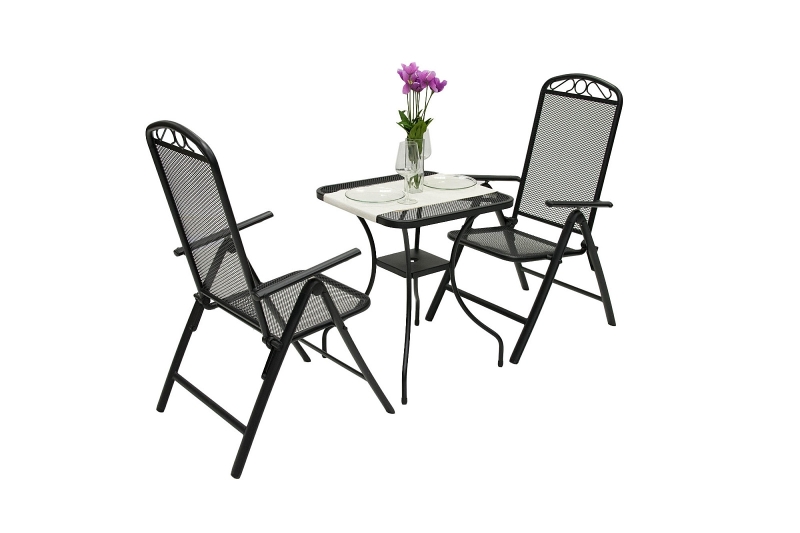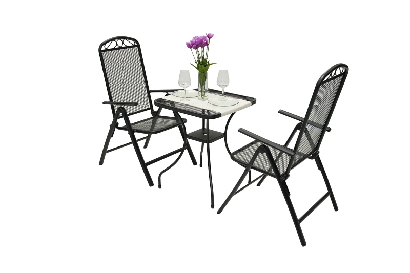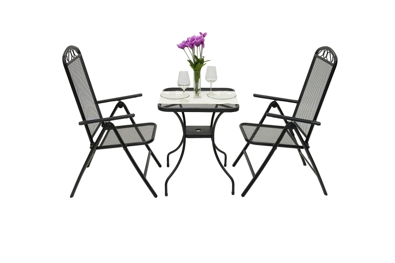 Prezrite si aj ďalšie záhradné sety kovového nábytku za výhodné internetové ceny. Vyberte si ideálne posedenie, objednajte online a za pár dní je u vás. Sestava obsahuje: 1x Kovový stôl MONTREAL 60x60 cm, 2x Kovové kreslo polohovacie GREY (čierna)