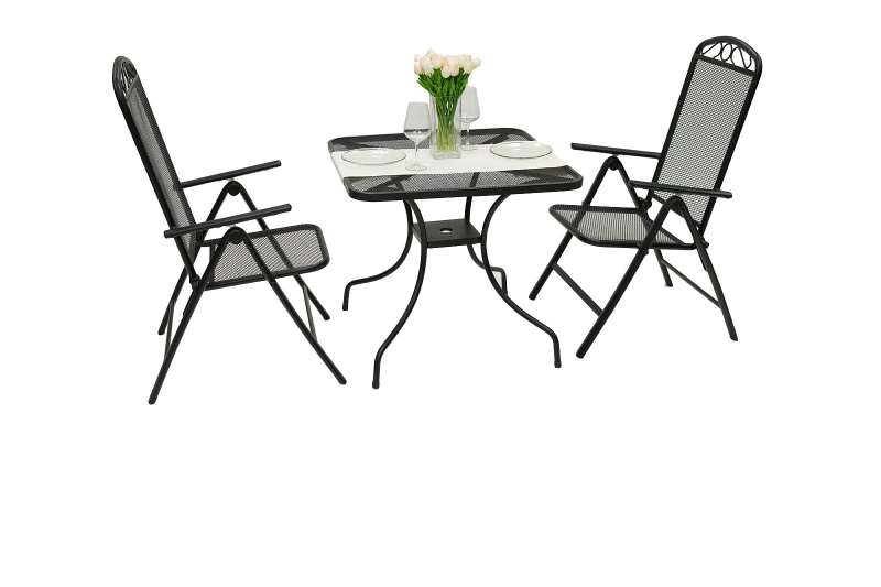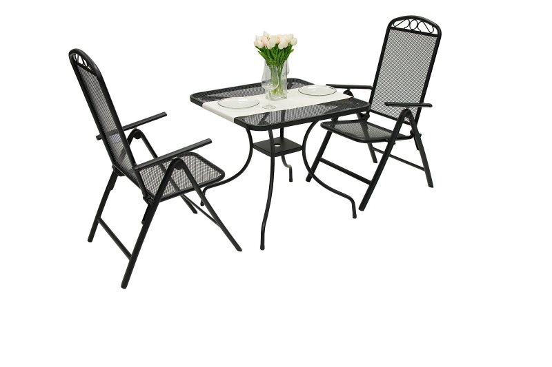 Prezrite si aj ďalšie záhradné sety kovového nábytku za výhodné internetové ceny. Vyberte si ideálne posedenie, objednajte online a za pár dní je u vás. Sestava obsahuje: 2x Kovové kreslo polohovacie GREY (čierna), 1x Kovový stôl MONTREAL 80x80 cm