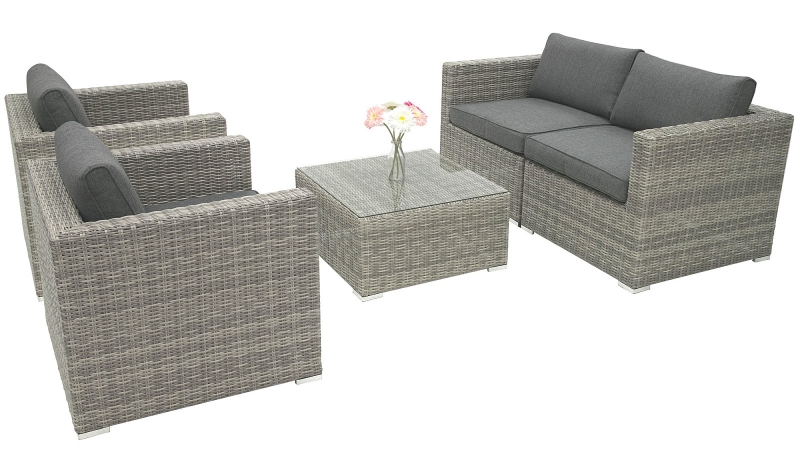 Overiť dostupnosť pre: DEOKORK Ratanová variabilná zostava SEVILLA 1+2+1 pre 4 osoby (sivá)