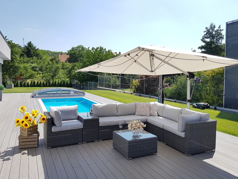 Ratanový nábytok z kolekcie modulových setov, ktorý vyniká svojou variabilitou.Zostavte si súpravy podľa Vašich predstáv.Umelý ratan sa pýši svojím nadčasovým dizajnom a takmer nulovú údržbou. Polyetylénové vlákno sa vyznačuje vysokou pružnosťou, pevnosťou a odolnosťou voči vlhkosti i UV žiareniu. Je odolný voči povětrmostním podmienkam a je vhodný na celoročné státie vonku (odporúčame pod zastrešením alebo ochranným obalom v zimných mesiacoch). Umelý ratan je ľahký, takže zaisťuje pohodlnú manimulaci záhradného nábytku po záhrade či terase.Konštrukcia je vyrobená z robustnej hliníkovej konštrukcie, ktorá je zvarená tak, aby zaistila vysokú nosnosť jednotlivých prvkov. Hliník sa vyznačuje vysokou odolnosťou a pevnosťou. Nedochádza ku korózii.Polstrovanie je v sile 10 cm, jedná sa o látku s hustotou 220 g/m2. Lemovanie po krajoch. Penová výplň. Všetky podušky sú vybavené zipsom.